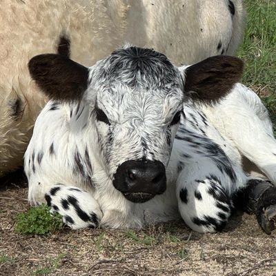 Bluebell gave birth to a drop dead gorgeous black tipped heifer sired by Olaf. There are no words for how beautiful this heifer is. Her markings are incredible and she has great genetics behind her. Her dam has a gorgeous udder, great feet, and looks like a cow should while still being on the smaller side. We are over the moon with this sweet girl. She is going to be such a great addition to her new owner's herd!